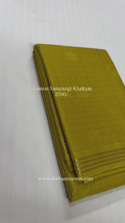 Vegan Kanjivaram in bright lemon yellow with self pallu and blouse, adorned with a delicate tiny border. A stylish and budget-friendly choice for everyday elegance.